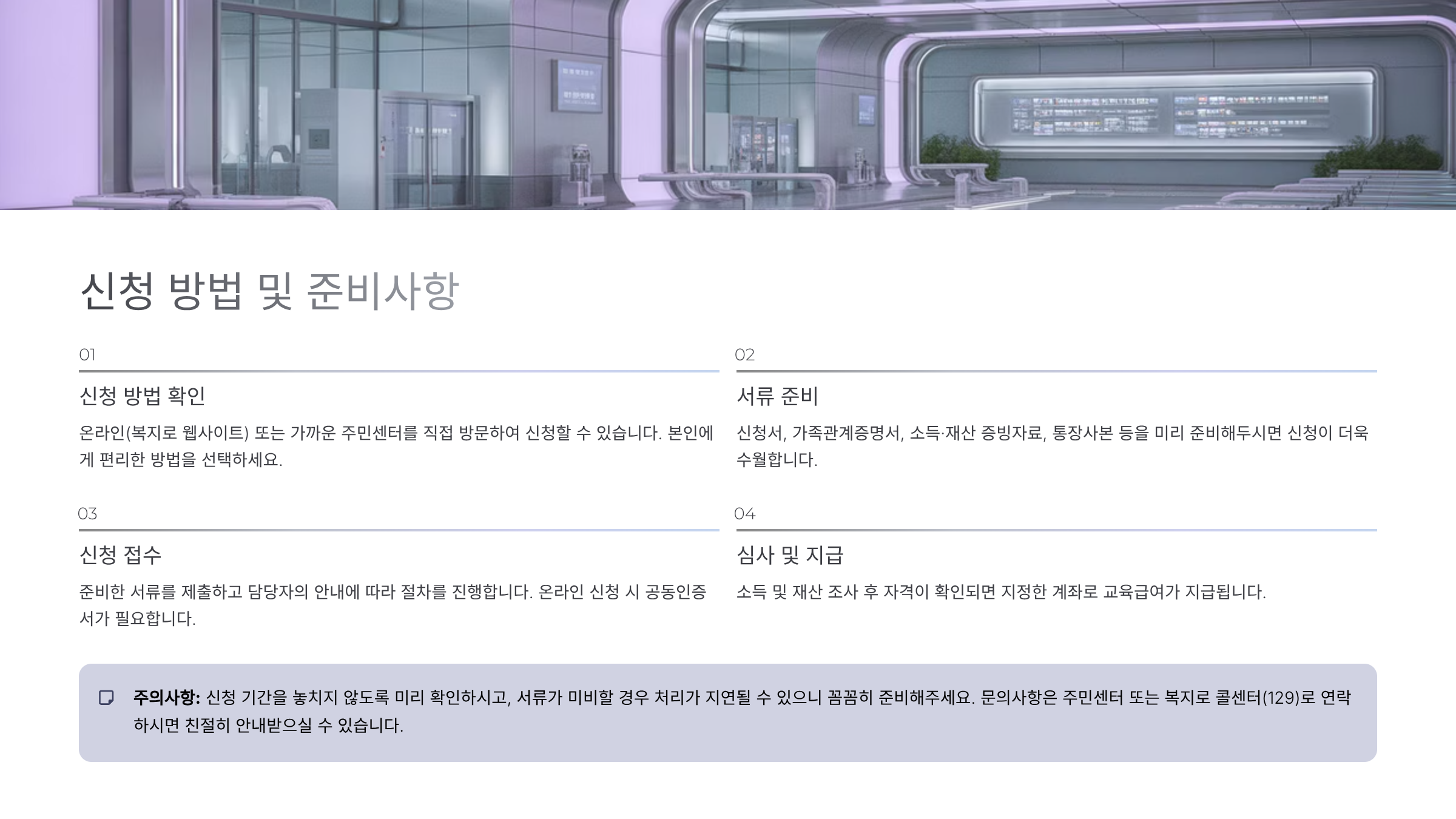 - 정부 대표 포털 “정부24” – 교육급여 신청 및 안내