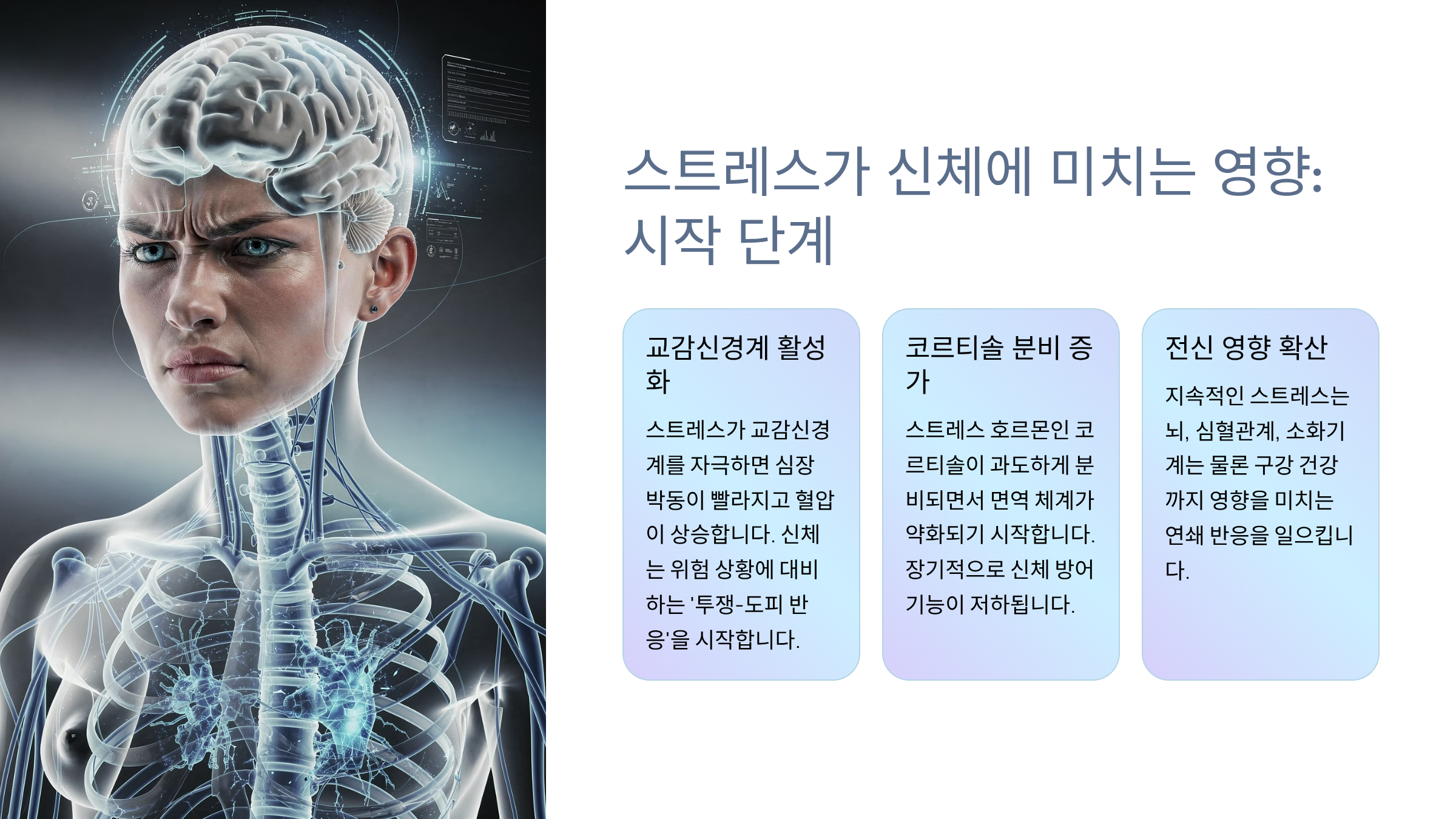 스트레스를 받으면 우리 몸은 교감신경이 활성화되고, 이 과정에서 침 분비가 급격히 감소합니다. 이 변화가 바로 입냄새의 시작점입니다.