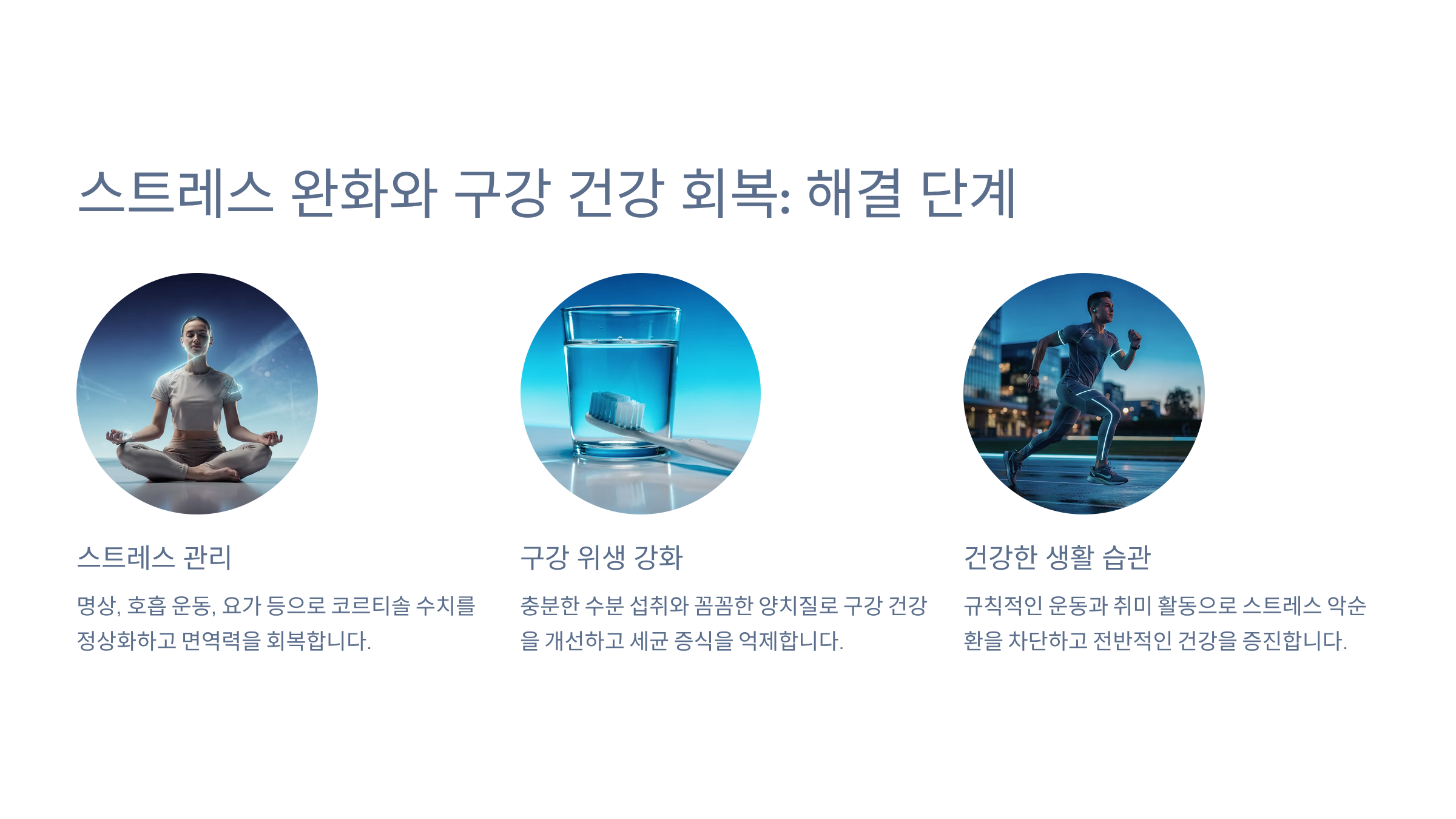 또한 코르티솔 증가로 면역력이 떨어지면 잇몸 염증, 혀 백태가 쉽게 생깁니다.