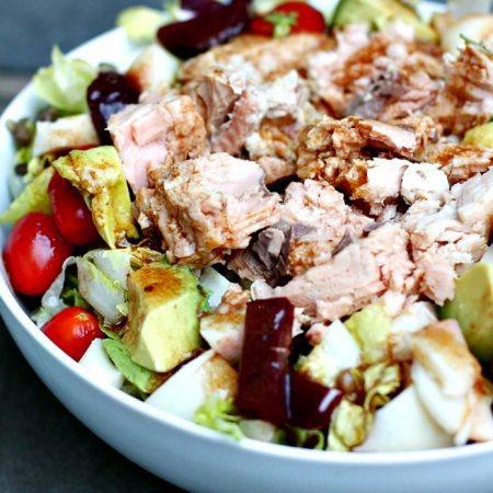 설명: 단백질이 풍부한 닭가슴살과 다양한 채소를 섞은 샐러드는 저칼로리이면서 포만감을 주는 훌륭한 식단입니다. 발사믹이나 올리브오일 드레싱을 소량만 사용하면 맛과 균형을 모두 잡을 수 있습니다.