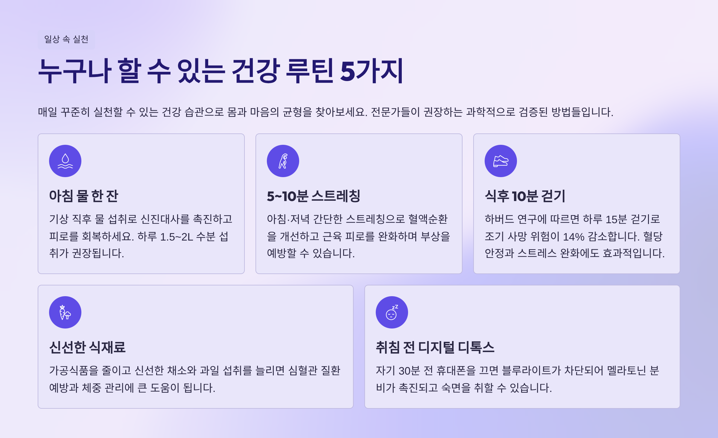 아래 루틴은 누구나 따라할 수 있으며, 꾸준히 반복하면 분명한 변화를 체감할 수 있습니다.