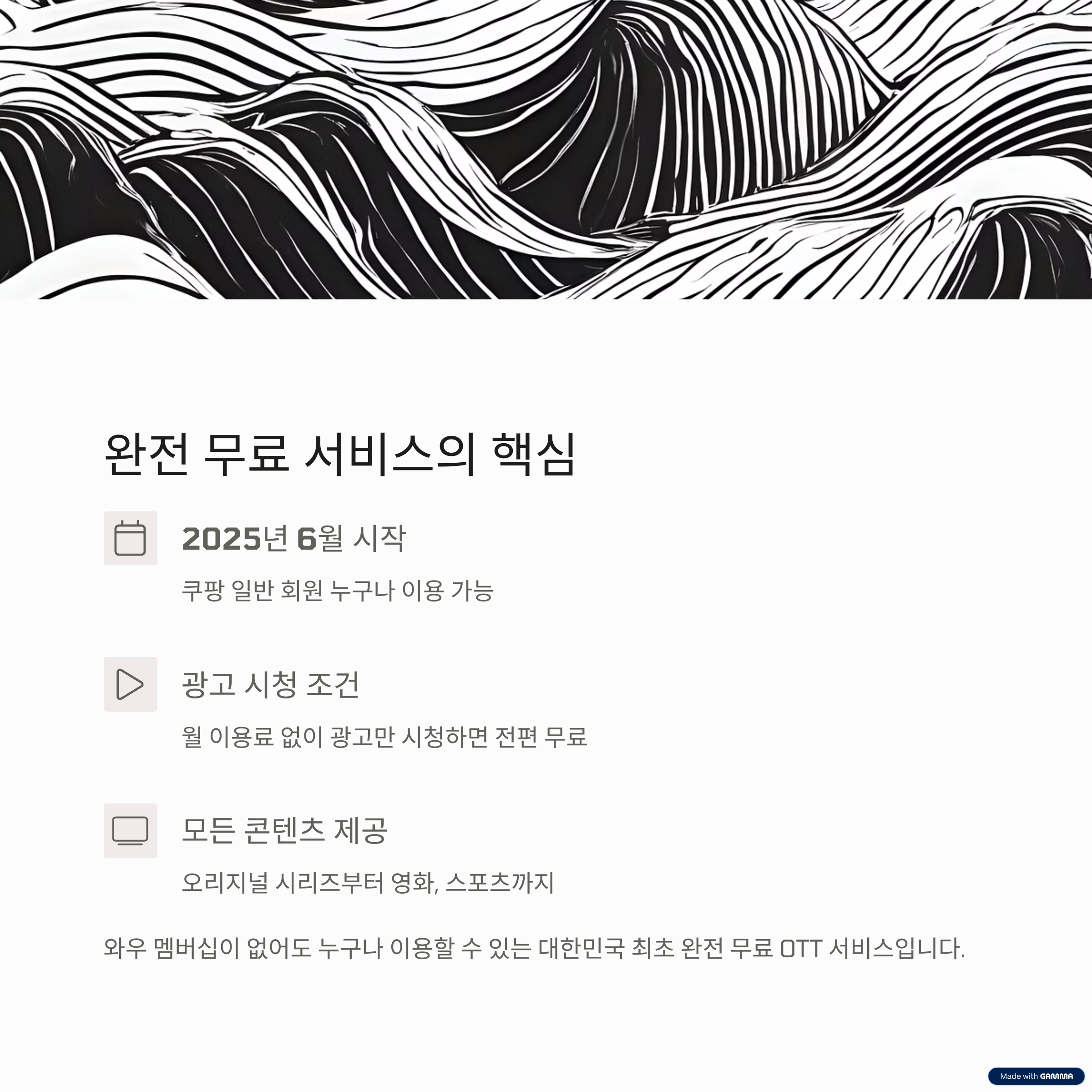 • 이용 방식: 광고 시청을 조건으로 대부분의 콘텐츠 무료 제공