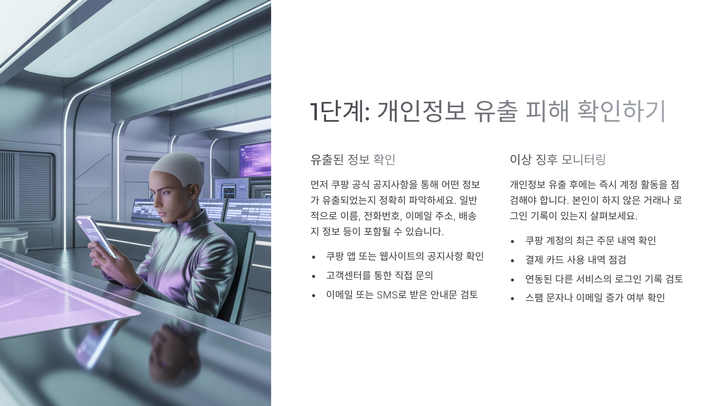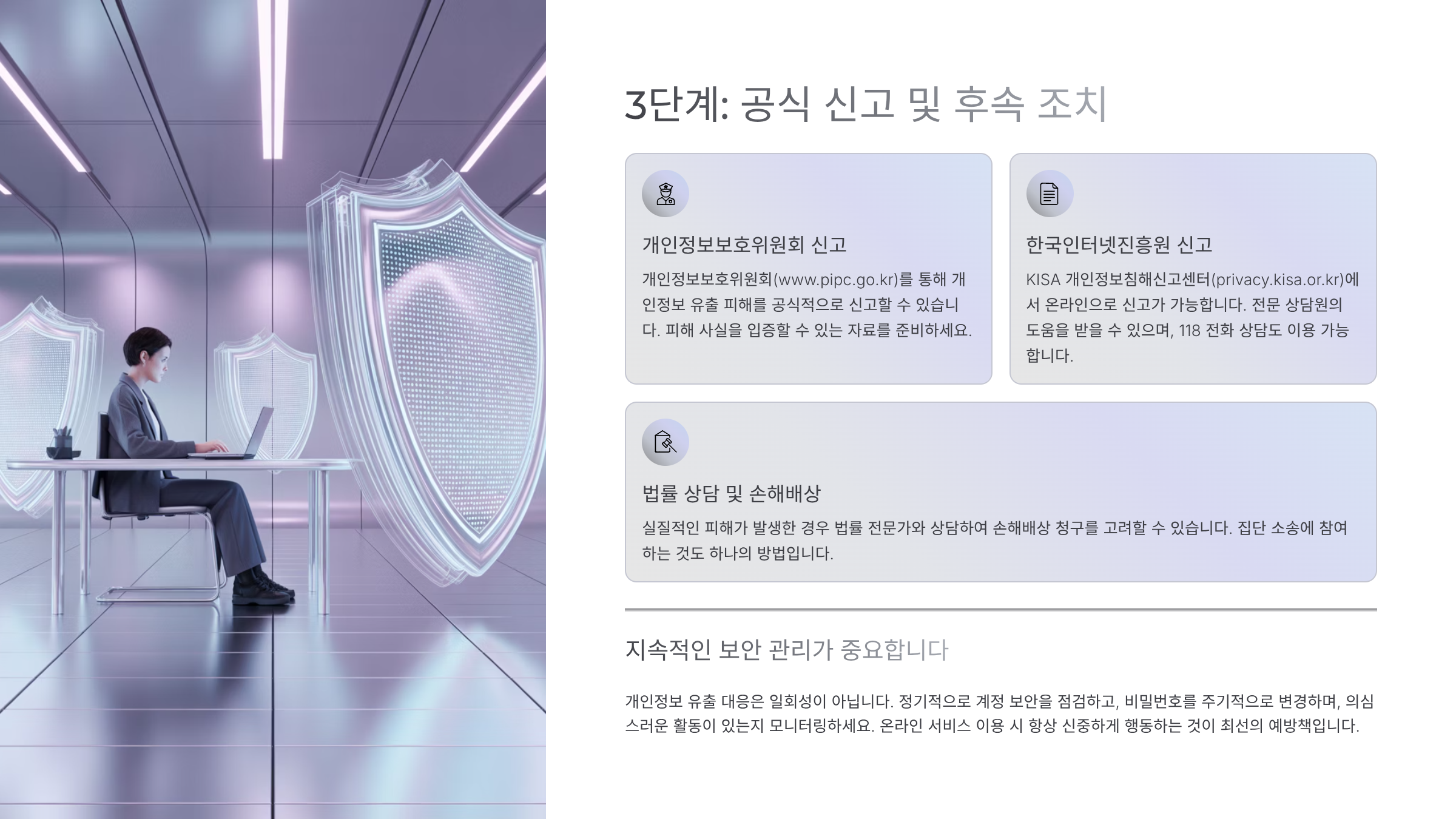 유출 여부 확인부터 계정 보호, 피해 구제 신청까지 단계별로 정확히 알려드립니다.