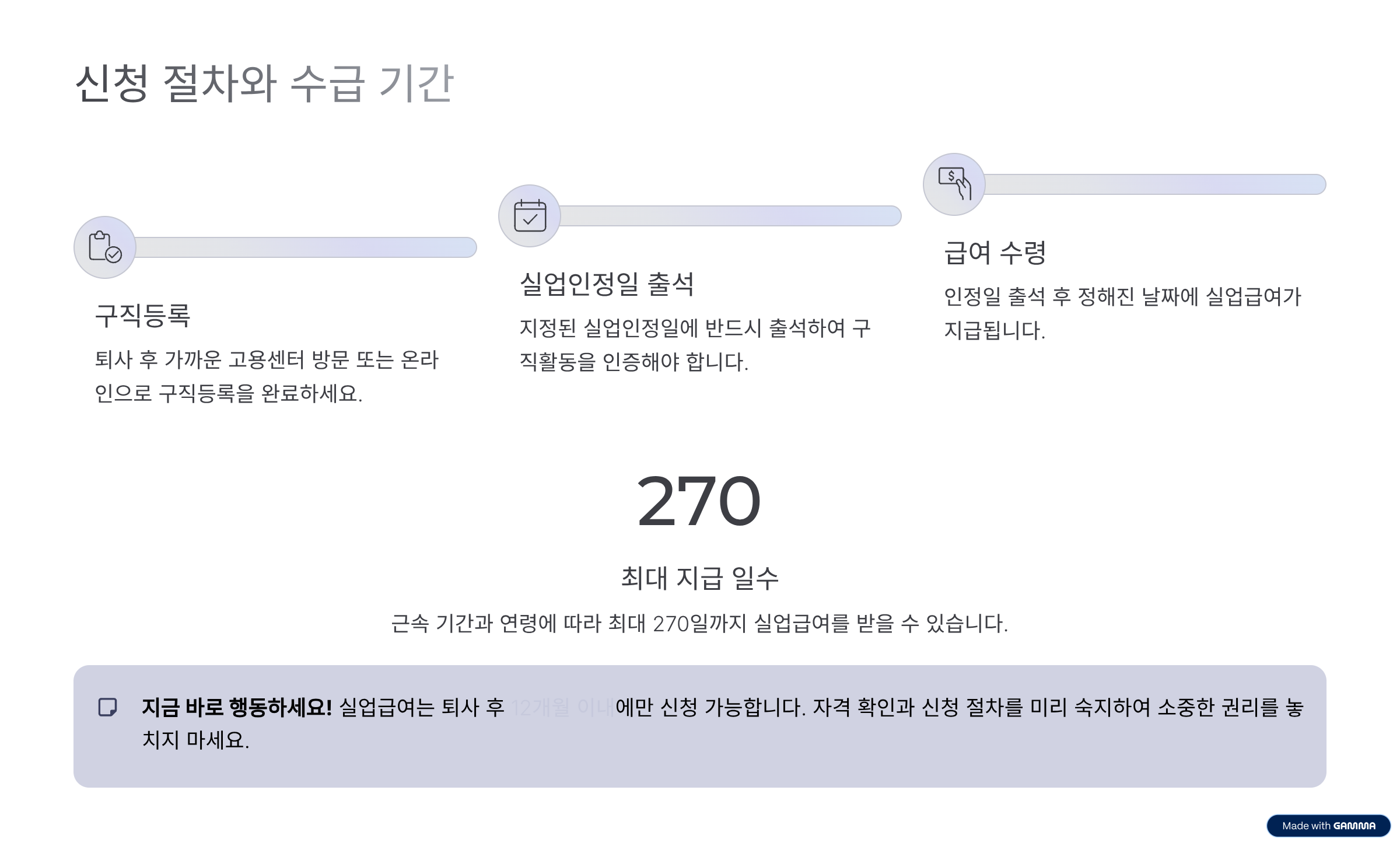 ※ 실업급여 신청은 퇴사 후 12개월 이내에만 가능합니다. 기한이 지나면 지급이 불가하므로 반드시 기간 내 신청해야 합니다.