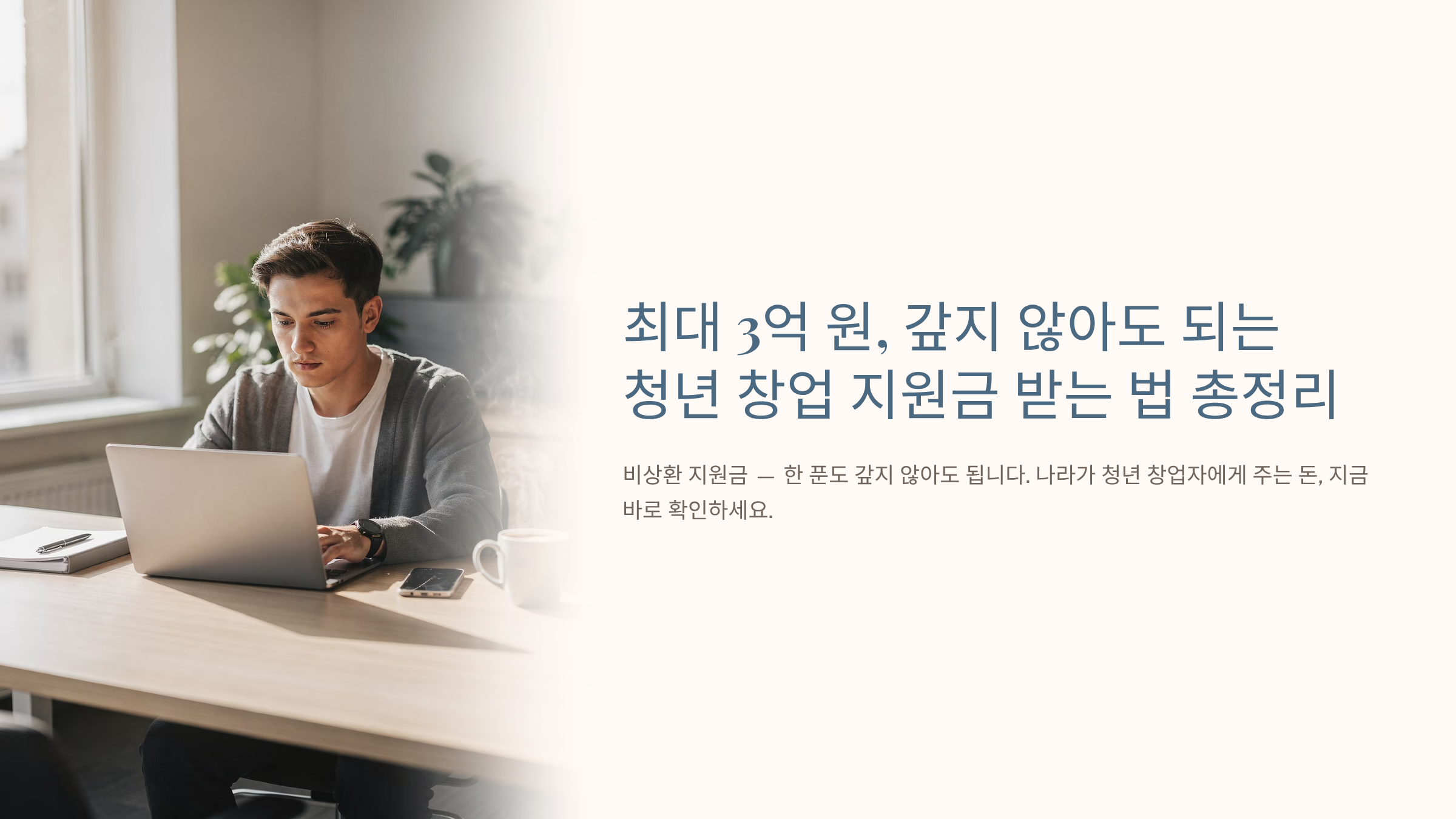 청년 창업 지원금은 만 39세 이하 청년 창업자를 대상으로 정부가 사업화 자금·교육·멘토링·공간을 패키지 형태로 지원하는 제도입니다. 단순 대출이 아닌 상환 의무가 없는 비상환 지원금이 핵심입니다.