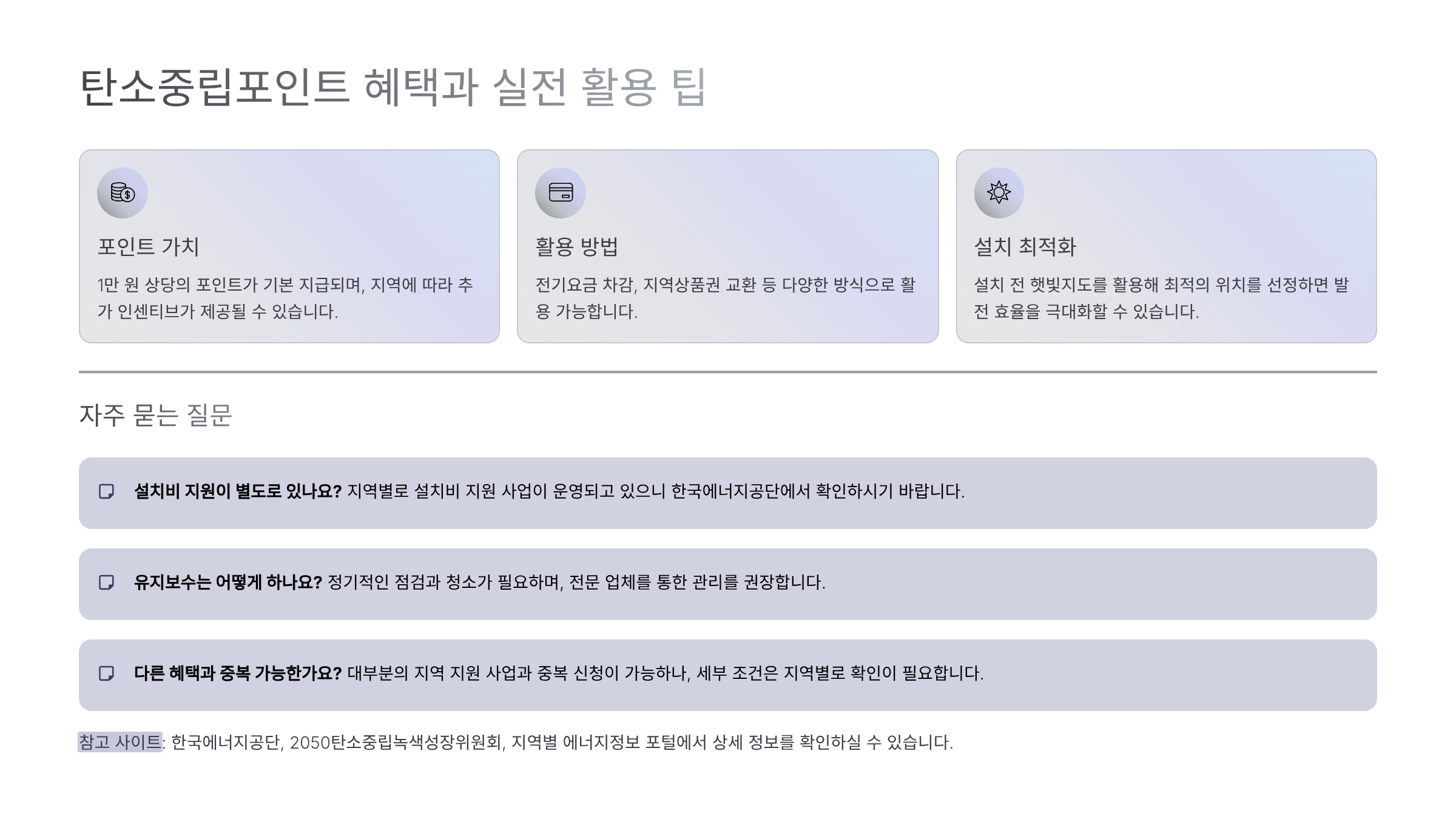 사례3: 서울 C씨는 태양광 설치 후 포인트 외에도 지방자치단체 보조금까지 추가로 신청하여 경제적 이익을 크게 얻었습니다.
