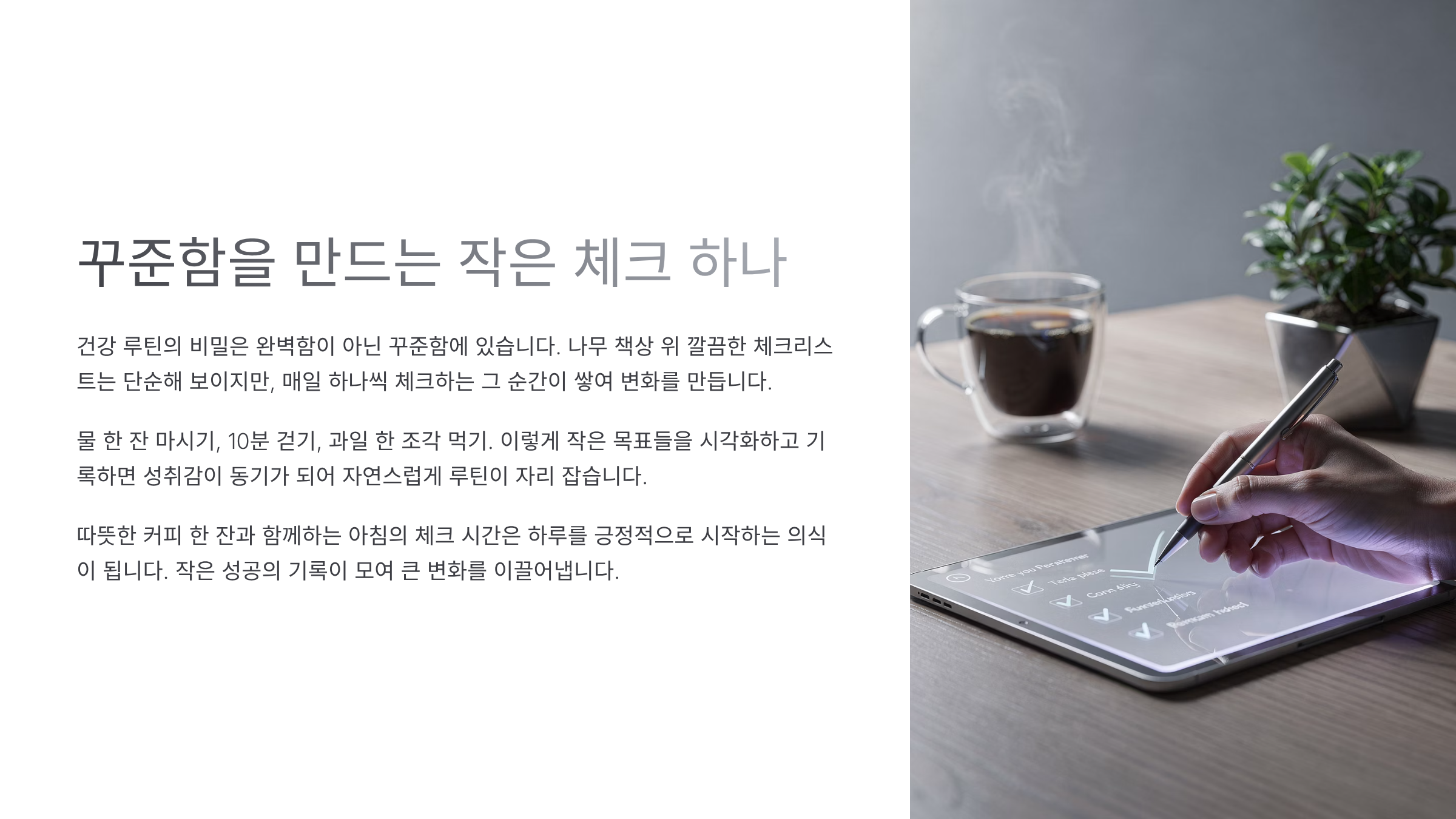 나만의 루틴을 꾸준히 실천하며 건강한 삶을 만들어보세요!